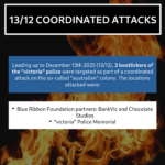 “A number of coordinated actions against ‘victoria’ police and their bootlickers have taken place in the lead up to 13/12.”