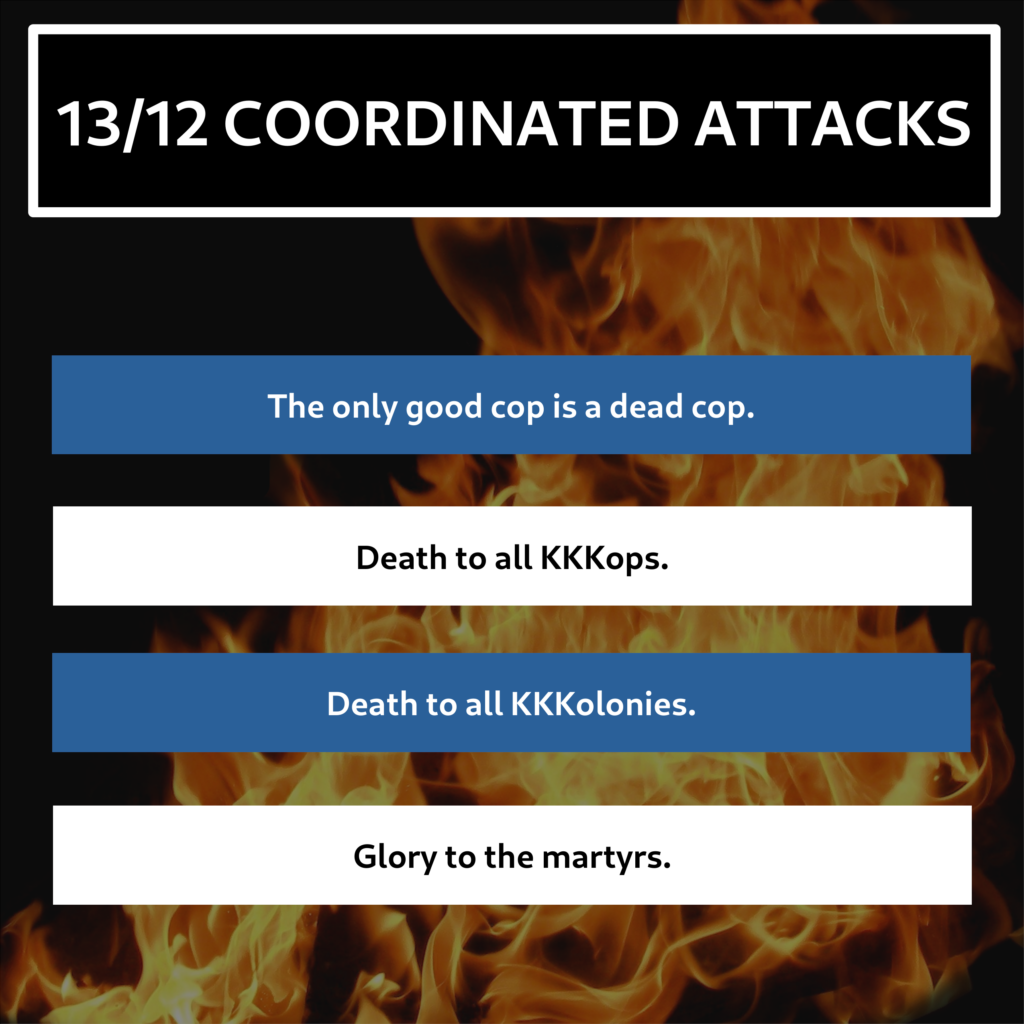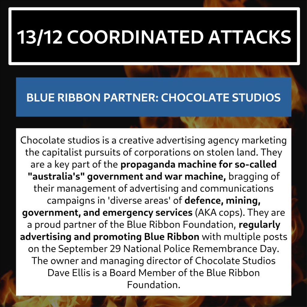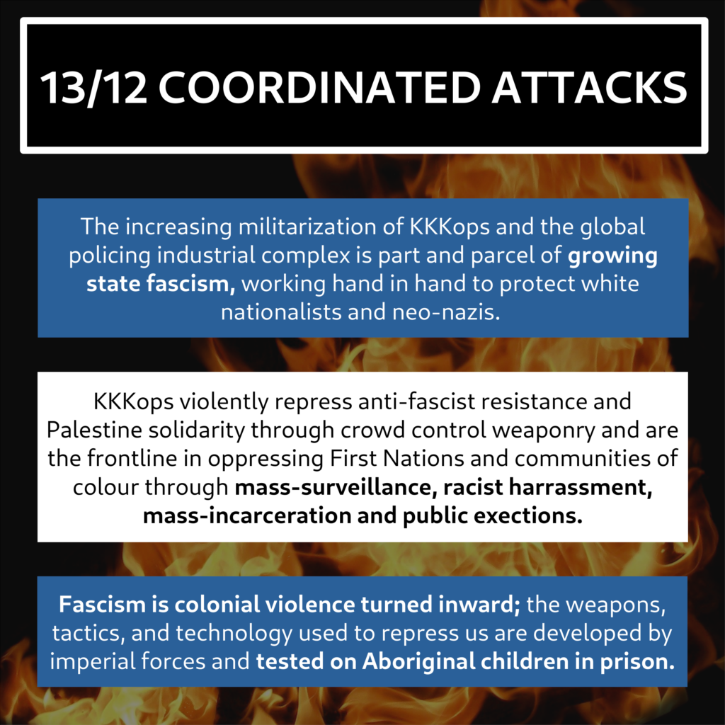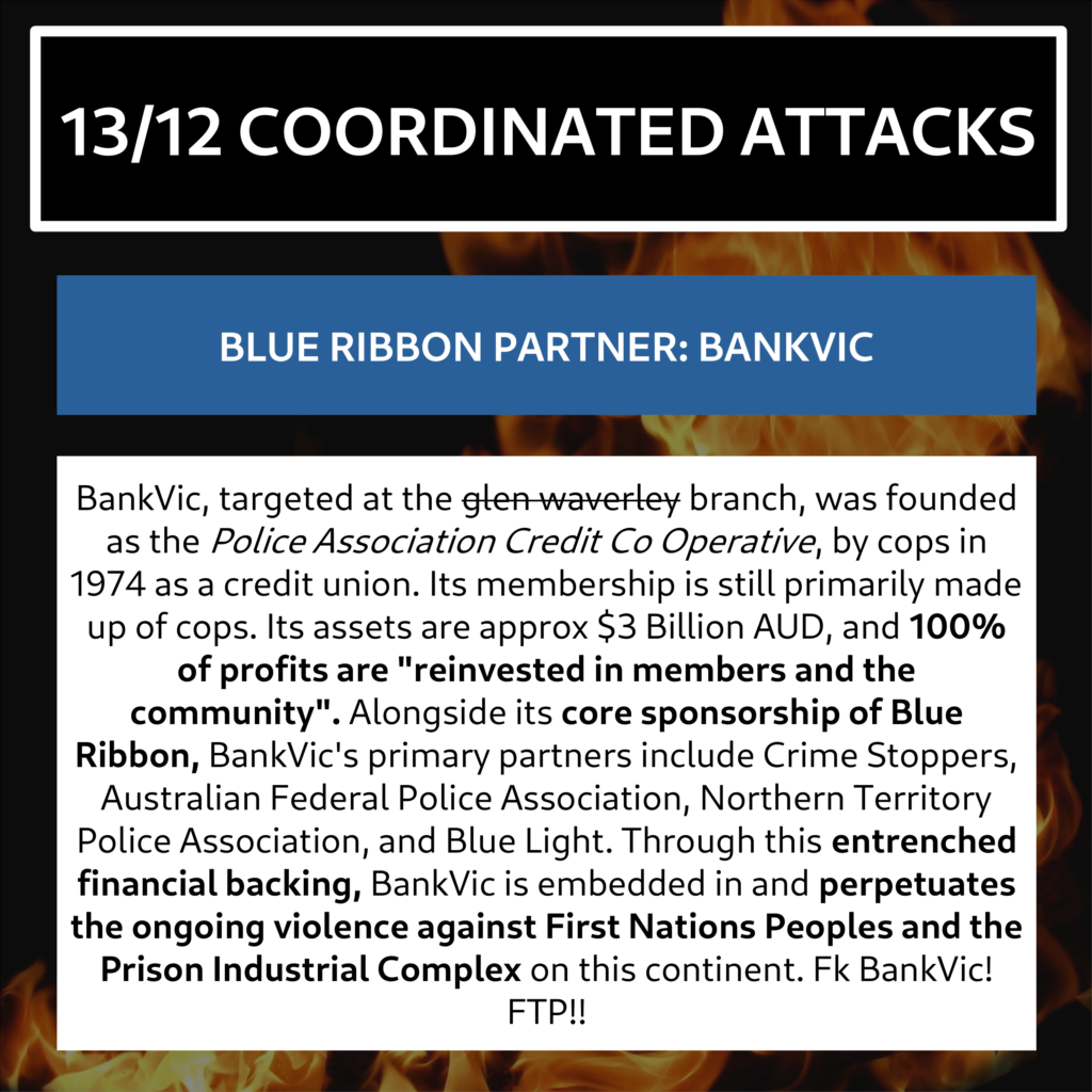 “A number of coordinated actions against ‘victoria’ police and their bootlickers have taken place in the lead up to 13/12.”